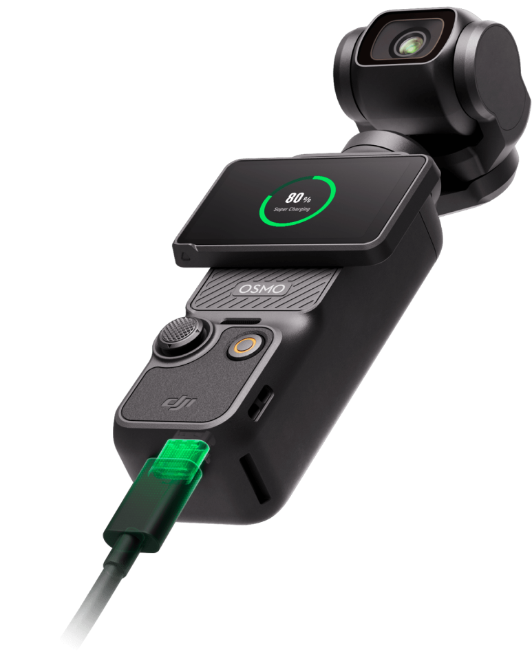 Compacto e flexível, o DJI Osmo Pocket 3 cabe facilmente na palma da mão ou no bolso, garantindo que esteja sempre pronto para os momentos que valem a pena registrar. Além disso, após ser desligado, o estabilizador trava automaticamente na posição de armazenamento, mantendo-o seguro e pronto para sua próxima aventura.