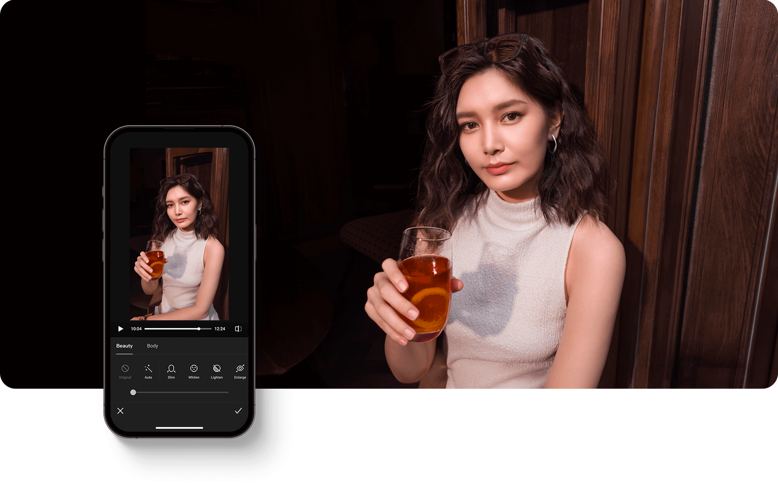 Efeitos Glamourosos 2.0 oferece opções de beleza mais personalizadas. Ative-o no touch screen giratório e baixe as imagens por meio do aplicativo DJI Mimo para embelezamento automático. Encontre o seu ângulo em cada foto.